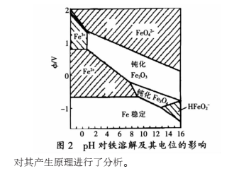 當零價鐵如鐵屑(活性炭)作為主填料的靜態床或滴流床與廢水發生電化學反應時, 鐵與炭形成無數微小的原電池,零價鐵作為陽極氧化而消耗,發生的電極反應如下:
