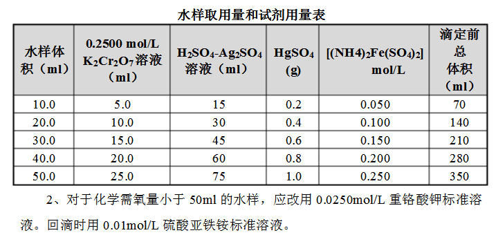 1、水樣取用體積可在10.00-50.00ml范圍內(nèi),但試劑用量及濃度需按下表進(jìn)行相應(yīng)調(diào)整,也可得到滿意的結(jié)果